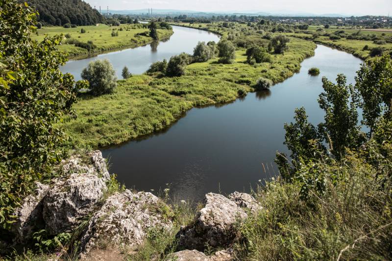 Południowo-wschodnią część obszaru obejmuje Pogórze Wielickie, wykształcone w postaci spłaszczonych garbów o przebiegu równoleżnikowym, których wierzchowiny znajdują się na wysokości 300 - 400 m n.p.m. Garby te są oddzielone płaskodennymi dolinami o szerokości do 1000 m. Obszar zbudowany jest ze skał fliszowych. Ku północy opada wyraźnym progiem denudacyjnym do kotlin podkarpackich. Krajobraz pogórza jest charakterystyczny dla gmin Świątniki Górne, Mogilany oraz południowej części gminy Skawina, gdzie graniczy od północy z Bramą Krakowską. Stanowi ona część doliny Wisły, wykształconej w postaci płaskiej trasy zalewowej, znajdującej się na wysokości 207 - 212 m n.p.m., rozciętej licznymi starorzeczami. Warto tu wyróżnić obszar Rowu Skawińskiego, czyli rowu tektonicznego obejmującego wąską dolinę Wisły, wypełnionego osadami morskimi miocenu. Jest to region bezleśny, częściowo tylko porośnięty łąkami. W dolinie Wisły warte zobaczenia są dawne meandry - tzn. wiśliska, aby je podziwiać warto udać się do zlokalizowanych w gminie Liszki miejscowości Jeziorzany i Ściejowice.