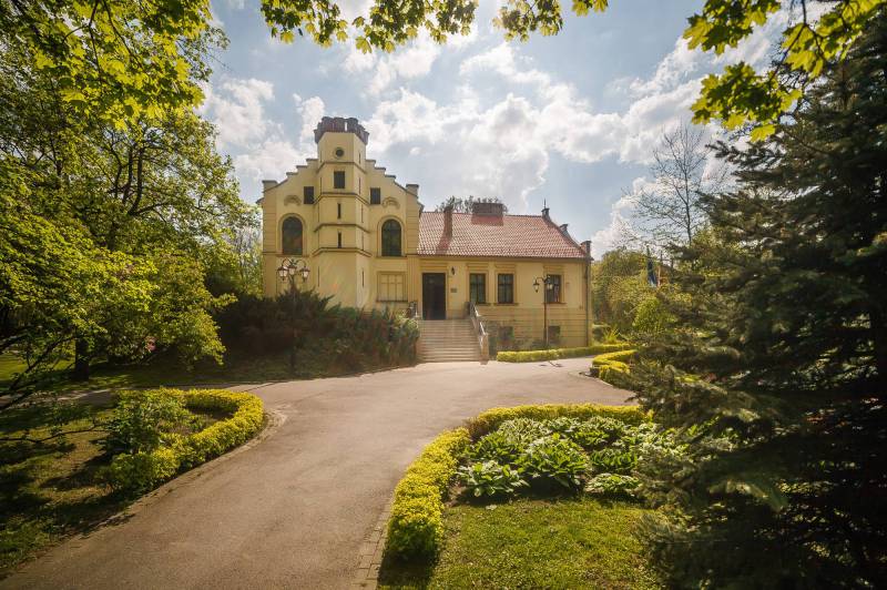 Pałac Sokół, który dzisiaj stoi na obszarze Parku Miejskiego (założonego w 1982 roku), powstał na miejscu wcześniejszego, warownego zamku, wzniesionego prawdopodobnie jeszcze przez Kazimierza III Wielkiego lub zaraz po jego śmierci. Zbudowano go na sztucznym nasypie, w miejscu, gdzie wcześniej najprawdopodobniej znajdowała się drewniana budowla. Uległ zniszczeniu w okresie najazdu Szwedów na miasto. Wraz z resztkami murów został rozebrany, a materiał z rozbiórki wykorzystano do budowy kamienic przy rynku i innych obiektów gospodarczych. Pod koniec XIX wieku teren wraz z ruinami przekazano powstałemu Towarzystwu Gimnastycznemu „Sokół”, (stąd dzisiejsza nazwa), które zainicjowało budowę pałacyku (1904-1906) według projektu Wincentego Koczarkiewicza. Po zakończeniu prac budowlanych obiekt stał się centrum życia mieszkańców Skawiny i drużyny sokolej. Skawińscy sokoli nie pozostali bezczynni w obliczu I wojny światowej. 26 sierpnia 1914 r., spod budynku „Sokoła” wyruszyła do Krakowa 25-osobowa drużyna ochotników pod dowództwem Alfreda Bieniasza, by zasilić legiony Józefa Piłsudskiego. W dwudziestoleciu międzywojennym działały tutaj teatr i kino, a w pobliżu funkcjonowała strzelnica. Po wojnie budynek był siedzibą klubu sportowego „Skawinka”, zaś po remoncie w latach 80. XX w. przeznaczono go na siedzibę Miejskiego Domu Kultury, z którego wykształciło się w 1992 r. Centrum Kultury i Sportu. Pałacyk jest ważnym miejscem na mapie kulturalnych działań podejmowanych na terenie Skawiny.