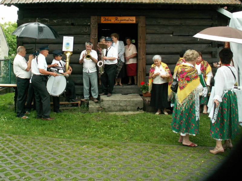 Izba znajduje się w pobliżu szlaku zabytków kultury drewnianej Małopolski kościoła pod wezwaniem NNMP z XVI w. Izba powstała w 2010 r. staraniem Stowarzyszenia Przyjaciół Ziemi Krzęcińskiej. W drewnianym spichlerzu z II poł. XIX w. należącym do zespołu zabudowań plebańskich z zachowaniem oryginalnych sąsieków na zboże zgromadzono eksponaty ilustrujące dawne życie chłopskie, przedmioty używane w domu, w polu i w obejściu oraz eksponaty jak najbardziej współczesne: dożynkowe wieńce i chleby okolicznościowe, z których do tej pory słynie Krzęcin. Najcenniejszym eksponatem jest sztandar Stowarzyszenia Młodzieży Polskiej przywieziony podczas okupacji do Krzęcina przez uciekinierów z poznańskiego zaprzyjaźnionych z rodziną Hallerów.
