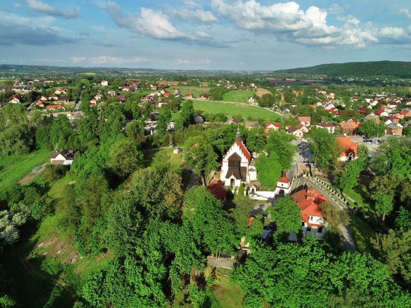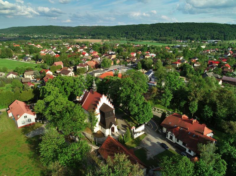 z około 1300 r. uznanego za jedną z najstarszych ceglanych budowli małopolskiej wsi. Pełni on funkcję centralnego placu miejscowości – miejsca spotkań i integracji mieszkańców oraz wielu wydarzeń m.in. odbywają się tu coroczne spotkania przy choince, targi świąteczne, imprezy dla dzieci, rodzin i seniorów a także uroczystości o charakterze państwowym