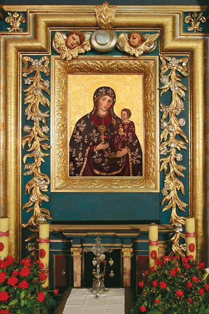 W 1845 r. obraz uległ częściowemu zniszczeniu i zastąpiono go kopią na płótnie z wizerunkiem Matki Bożej Królowej, a stary zostawiono pod spodem jako relikwię. W 1954 r. pierwotny obraz odsłonięto i poddano odrestaurowaniu oraz umieszczono w głównym ołtarzu. W 1999 r. ponownie poddano go konserwacji i w tej postaci widnieje do dziś w głównym ołtarzu. W drugiej połowie XVIII w. namalowano jeszcze kopię na desce: jak można przypuszczać, mógł to być obraz feretronu noszony na procesjach, który w roku 2017 został poddany konserwacji i znajduje się na plebanii.