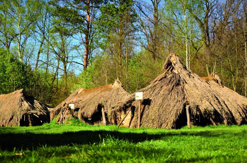 The ancient village was built using bronze axes and knives, flint sickles and saws, and tools made from bone, horn and wood. Construction materials were typical of that era (tree trunks, pliant branches, bast, clay, wicker and turf). No modern-day material (nails, wire or plastic foil) was used to join construction elements.