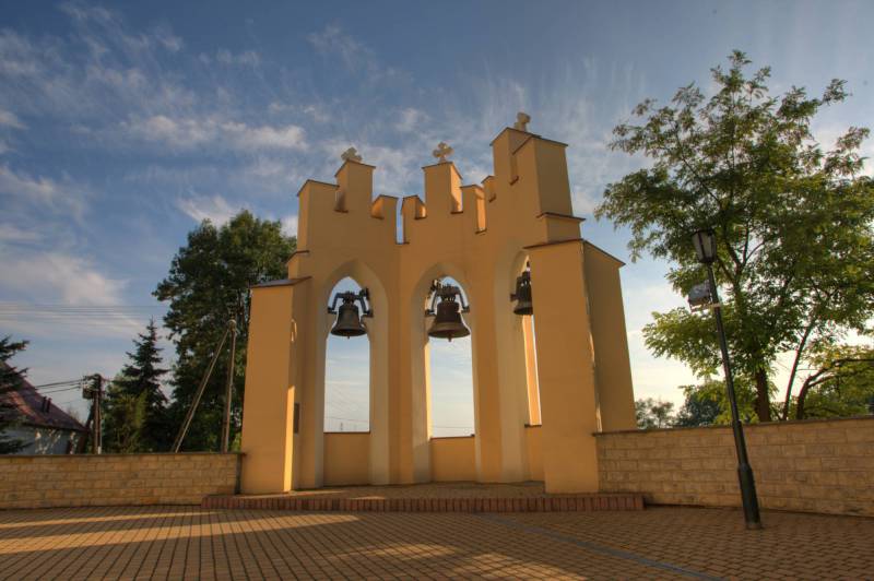 Le clocher de 1850. – aujourd’hui, le clocher abrite trois cloches : la cloche du Jubilé au milieu, coulée pour célébrer le 2000e anniversaire de la naissance de Jésus-Christ et le millénaire de l’existence de l’évêché de Cracovie, et les cloches Saint- Barthélemy et Saint Joseph.