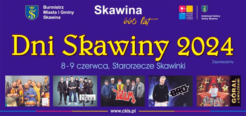 Obchody Święta Miasta to weekend pełen atrakcji dla całych rodzin, który rokrocznie przyciąga tysiące mieszkańców naszej gminy i nie tylko. W ramach Dni Skawiny 2024 zaplanowaliśmy aż 7 koncertów, plenerową dyskotekę, widowiskowy pokaz laserów, a także Festiwal Kolorów i ekstremalny bieg z przeszkodami. Usłyszymy wiele przebojów miedzy innymi „Jeszcze będzie pięknie” B.R.O. czy hit „Piątunio”, który zaśpiewa dla nas Liber & InoRos. Zwieńczeniem dwudniowej zabawy będzie koncert legendarnej grupy DŻEM z Sebastianem Riedlem na czele.