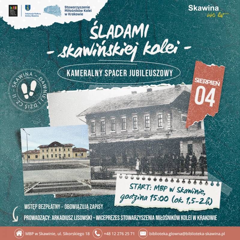 Po sukcesie pierwszego wydarzenia z cyklu: „Skawina – dawniej i dziś”, czyli kameralnych spacerów z historią, zapraszamy na kolejną odsłonę. Nasz dom - Dworzec Biblioteka Główna Skawina POCIĄGA nas do odpowiedzialności i budzi historyczną ciekawość. To właśnie kolej stanowi KOLEJny temat naszych podróży w przeszłość.