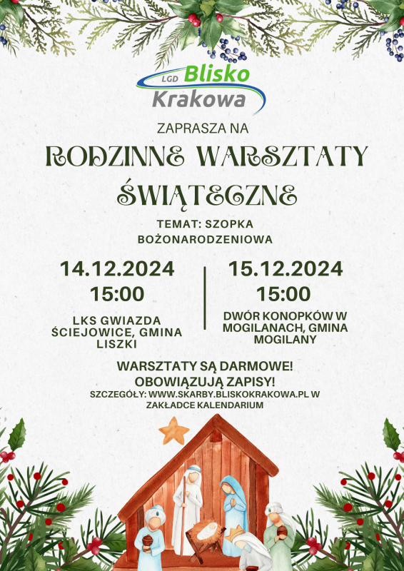 15.12.2024 o godzinie 15:00 we Dworze Konopków w Mogilanach, ul. Rynek 3, gmina Mogilany