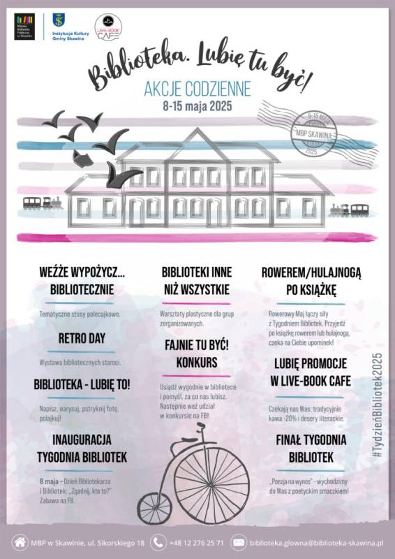 Biblioteka Miejska w Skawinie zaprasza do spędzania razem z nimi Tygodnia Bibliotek 2025! Poniżej wydarzenia, które zostały zaplanowane na najbliższy tydzień: