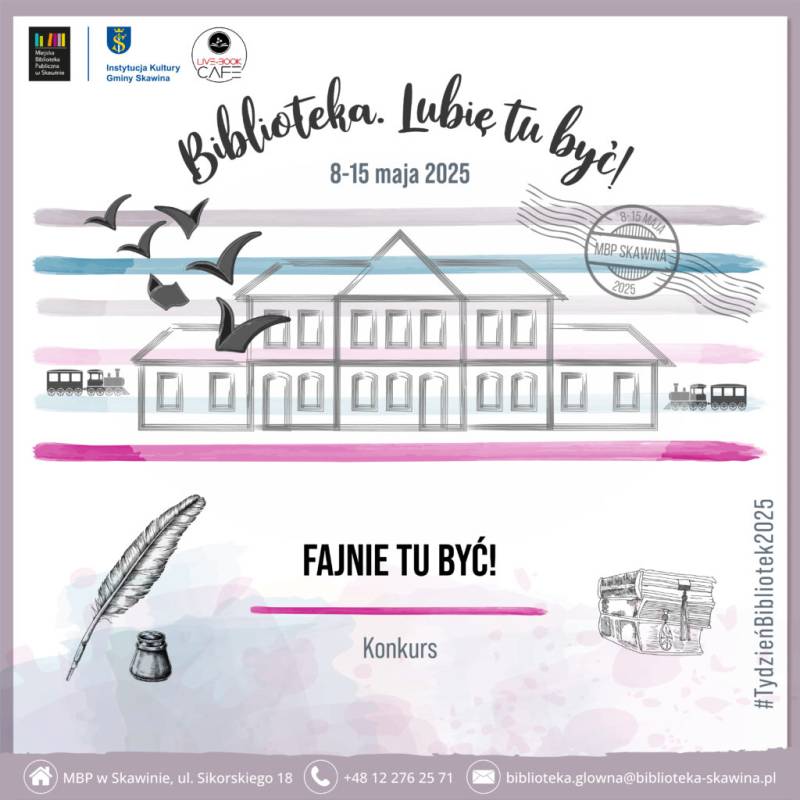 - „Fajnie tu być!” – konkurs! Pokaż w dowolnej formie (cyfrowej, lub takiej, którą da się zdigitalizować), za co lubisz naszą bibliotekę. Zdjęcia, filmiki, laurki, wiersze – wszystkie chwyty dozwolone!