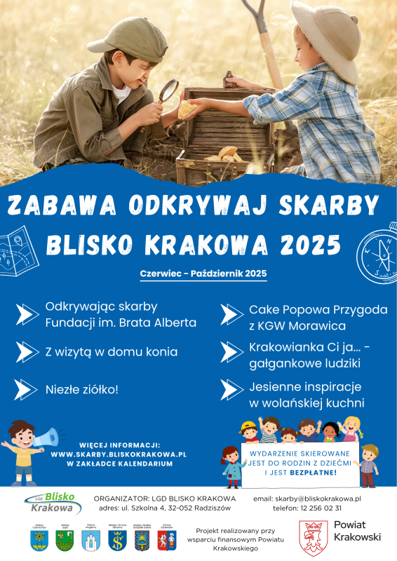 Uwaga: Liczba miejsc jest ograniczona, decyduje kolejność zgłoszeń. Przed wzięciem udziału koniecznie zapoznaj się z Regulaminem Zabawy Odkrywaj Skarby Blisko Krakowa 2025 r.