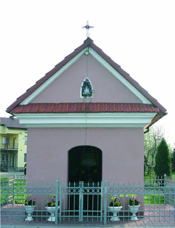 Kapliczka zbudowana została na przełomie XI/XX wieku. Wzniesiona jest na rzucie prostokąta, murowana z cegły, otynkowana, nakryta dwuspadowym dachem krytym dachówką. Ściany zwieńczone profilowanym gzymsem, na ścianie frontowej krytym dachówką. Otwór drzwiowy zamknięty łukiem koszowym, w nim dwuskrzydłowe drzwi.